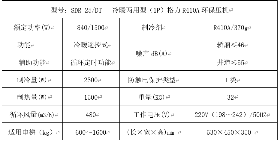 8、选择性强,针对大小不同的轿厢载重量与不同的轿厢环境,公司分别研制出 1 匹单冷型、1.5 匹单冷型、1 匹冷暖型、1.5 匹冷暖型空调,客户可根据自身的轿厢条件选择不同规格型号的电梯空调;